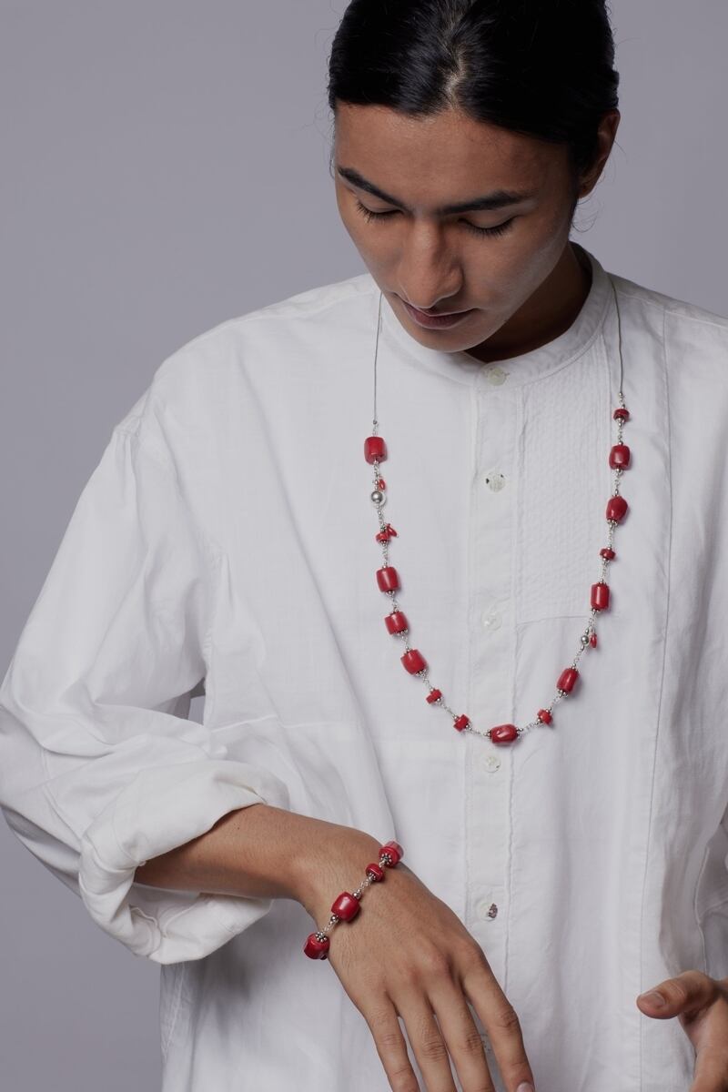 Material:Sea Bamboo Coral (Dyed red)、Silver 925